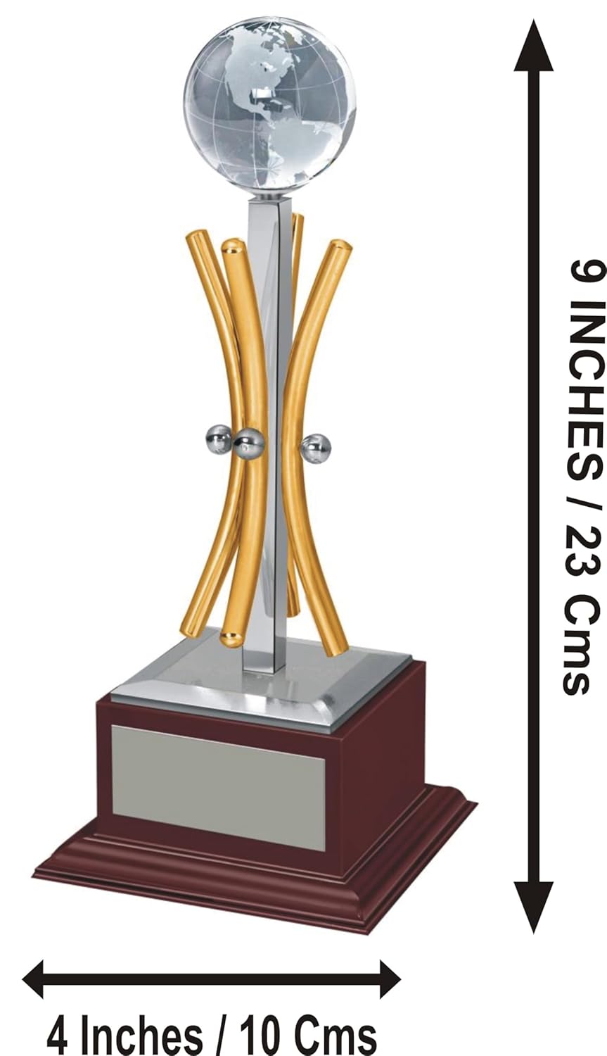 GABA Time Premium Metal Trophy with Crystal Globe – Elegant Recognition Award for Winners, Employees & Students | Ideal for Corporate, School, College & Sports Events Finish (9 inch)